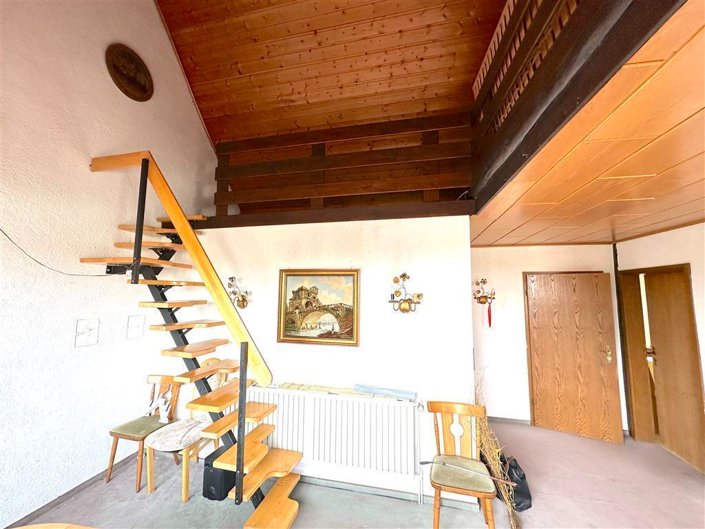 im Dachgeschoss: eine renovierungsbedürftige, in 1988 ausgebaute Dachgeschosswohnung auf ca. 92 m² mit 3 Zimmern, Küche, Bad, Balkon und Empore (zusätzliches Dachzimmer möglich).
