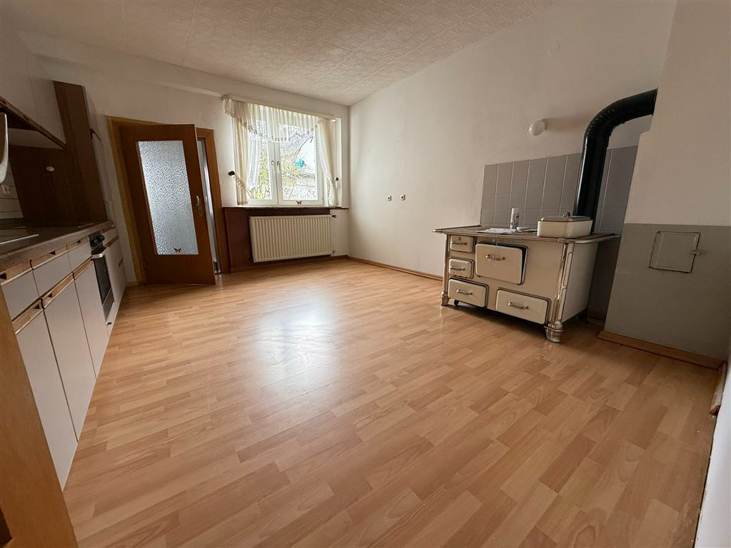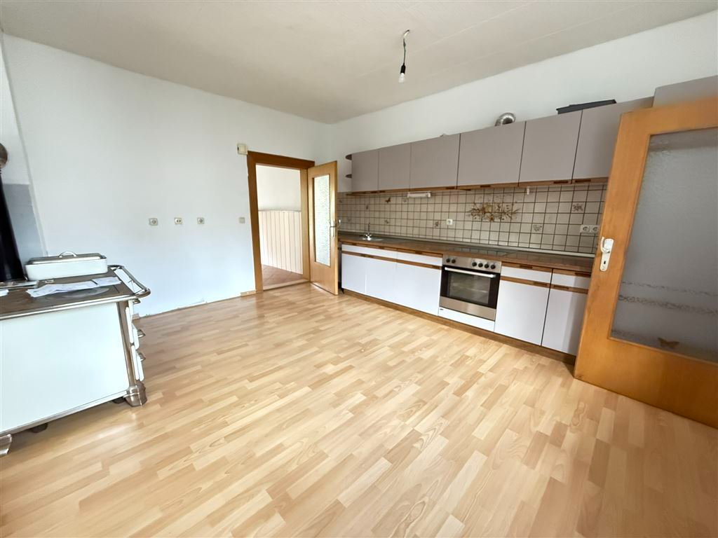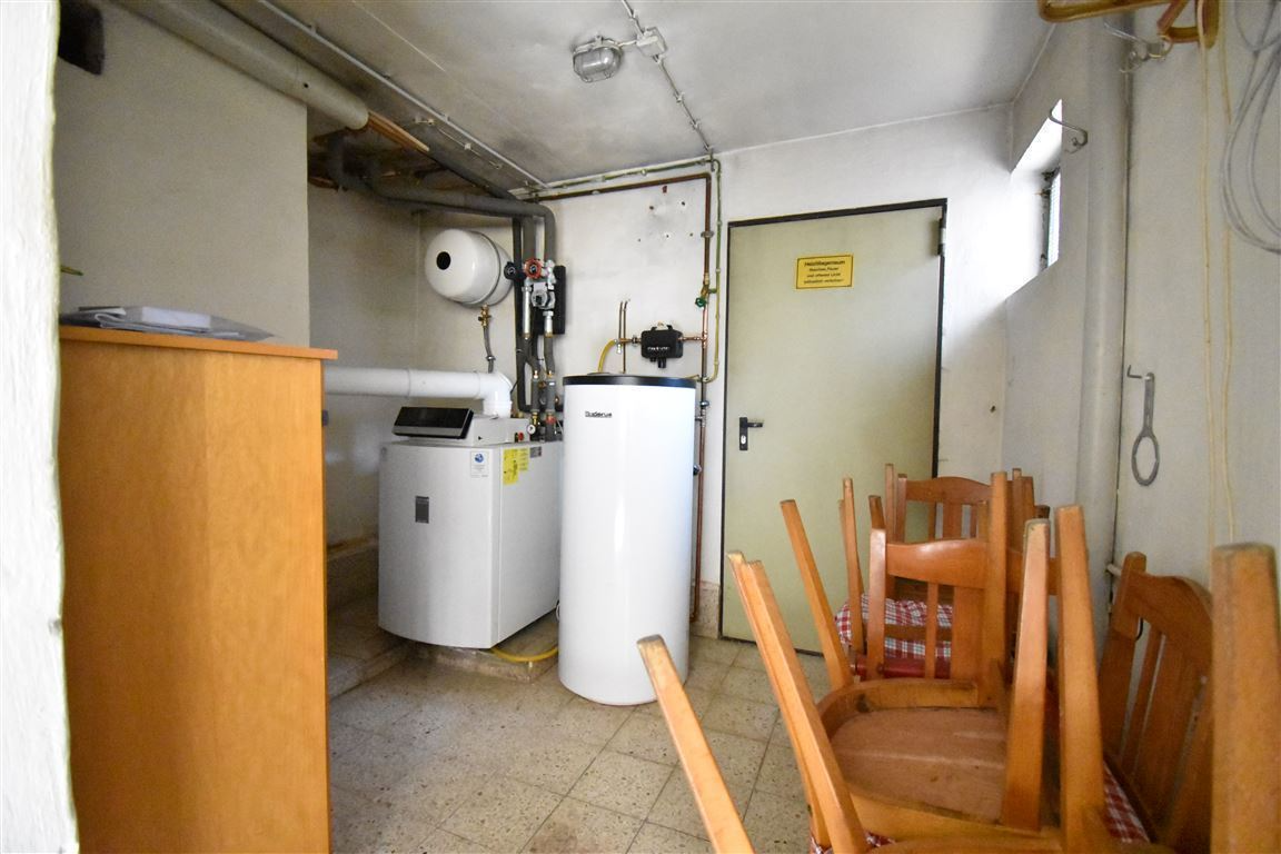 Schon beim Eintreten empfängt Sie ein großzügiger Eingangsbereich, der den Charme vergangener Zeiten ausstrahlt. Rechter Hand, unter der alten Treppe, die in die oberen Stockwerke führt, befindet sich ein Gäste-WC mit Dusche. Folgen Sie dem Flur weiter, gelangen Sie in eine gemütliche Küche und anschließend in die Waschküche, die direkten Zugang zum Garten bietet. Von hier aus erreichen Sie auch den Heizungs- und Öllagerraum, ein weiteres WC sowie einen Abstellraum mit Durchgang zur Garage. Die Ölheizung wurde erst 2021 erneuert und sorgt nun zuverlässig und effizient für wohlige Wärme.