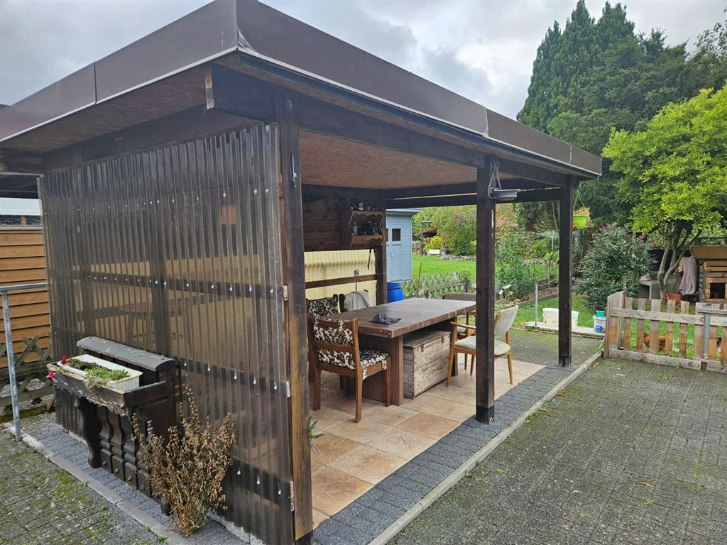 Dieses in 1966 massiv erbaute Einfamilienhaus bietet eine Wohnfläche von ca. 158 m² und eine Gartenfläche von ca. 1.543 m². Das Grundstück ist rundherum eingezäunt. Ein überdachter Terrassenbereich im Garten bietet geschützte Fläche gegen Sonne und Regen.